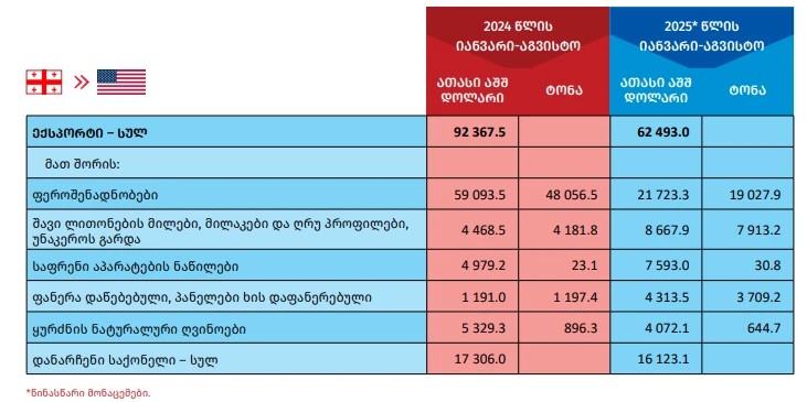 საქართველოდან აშშ-ში ექსპორტირებული უმსხვილესი სასაქონლო ჯგუფები